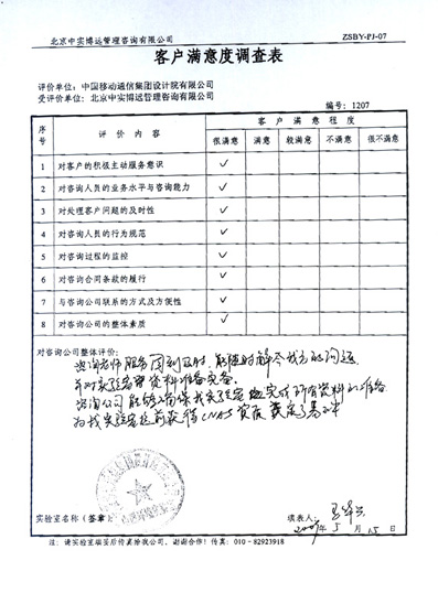 附:满意度调查表
