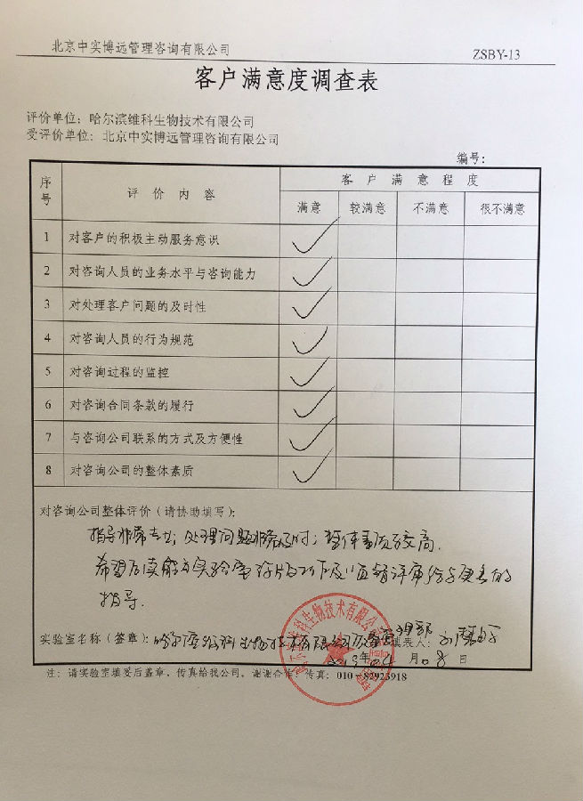 评价单位:哈尔滨维科生物技术公司